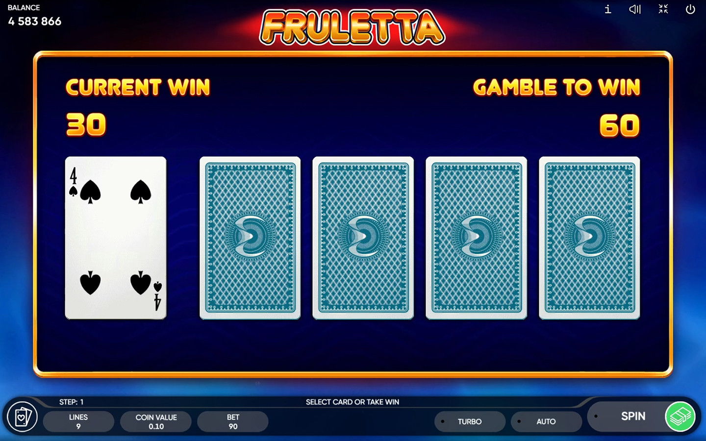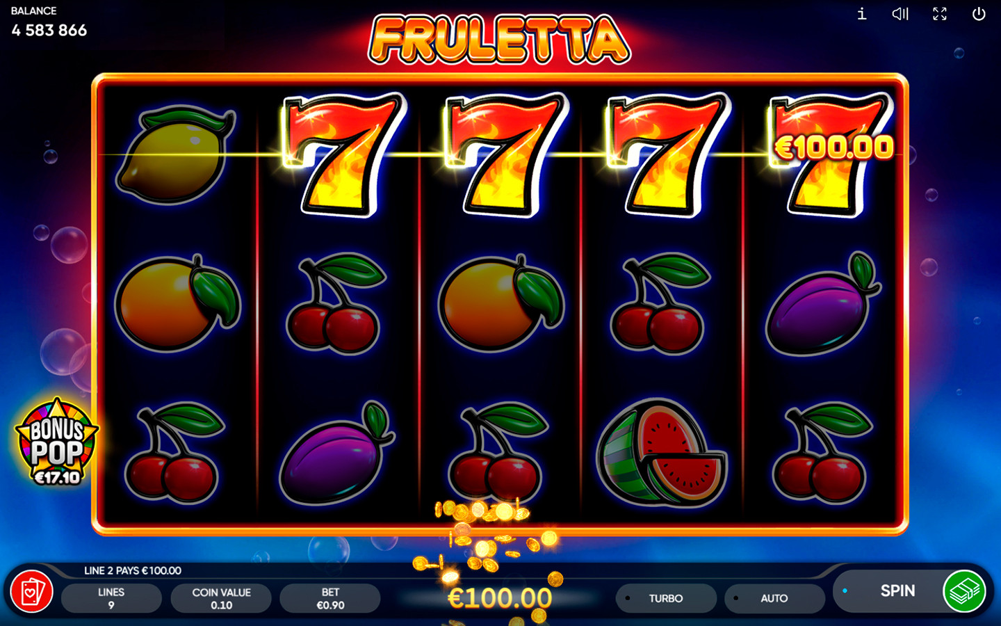 Fruletta offers a flexible betting range, accommodating both cautious players and high rollers. Bets start as low as $0.09 and go up to $180, allowing players to tailor their wagers according to their budget and risk preference.